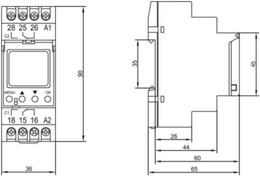 ⭐ szerokość 2 modułów (2x18mm), montowany na szynie DIN TH-35