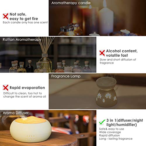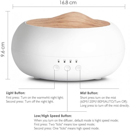 • 【Ciepła biel światło nocne i niska/wysoka mgiełka】: ten dyfuzor olejków eterycznych ma spokojne światło o ciepłej barwie światła, tworzy spokojną i delikatną atmosferę podczas pracy, czytania, nauki lub spania. Mgiełkę można używać samodzielnie bez lampy. Naciśnij i przytrzymaj przycisk światła, aby wyłączyć światło. Naciśnij i przytrzymaj przycisk mgły, aby wyłączyć urządzenie w każdym trybie.