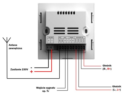 - Panel ścienny w kolorze białym z wbudowanym wzmacniaczem 2x17W