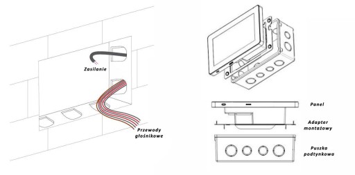 W celu zamontowania głośników należy wywiercić osiem otworów o średnicy 175mm i połączyć głośniki dołączonym kablem głośnikowym do wzmacniacza/panelu ściennego. Niezbędna głębokość do zabudowy głośnika to 83mm.