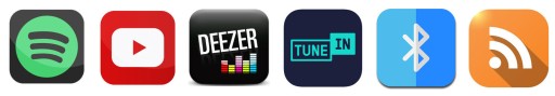 - Odtwarzacz radia internetowego (internetowe stacje radiowe za pośrednictwem aplikacji TuneIn/Radio FM)