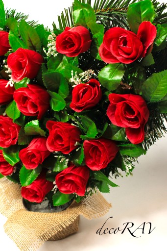 Оформление могилы: розы, венок из искусственного сердца, слезинка.