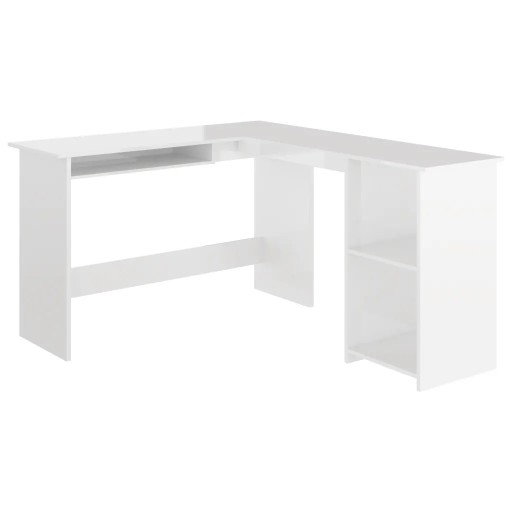 To nowoczesne, narożne biurko w kształcie litery L, z wysuwaną półką pod klawiaturę i 2 otwartymi półkami, jest bardzo praktyczne i będzie centralnym punktem Twojego biura lub gabinetu.