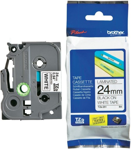 Brother oryginalny taśma do drukarek etykiet, Brother, TZE-251, czarny druk/biały podkład, laminowane, 8m, 24mm