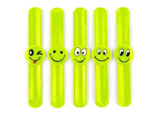 Uniwersalna opaska ostrzegawcza / odblaskowa na rękę z motywem emotikonki. Bardzo łatwa do założenia z magnesem w środku.