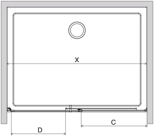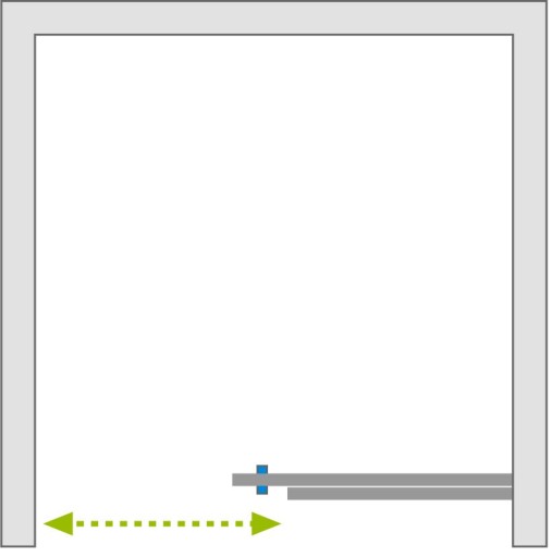 - Drzwi posiadają mechanizm przesuwu oparty na torze górnym. Szerokość wejścia do wnętrza prysznica po całkowitym rozsunięciu skrzydła wynosi: 690 mm