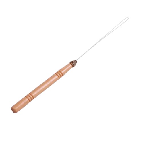 Specjalnie zaprojektowana pętelka pozwala na łatwe wkładanie do mikroringów lub tulejek, a następnie przeciąganie przez nie włosów. Rączka szydełka wykonana jest z drewna, odpowiednio wyprofilowana, a całość lekka i wygodna w użyciu. Produkt doskonały zarówno do użytku domowego, jak i dla profesjonalistów zajmujących się przedłużaniem włosów zawodowo.