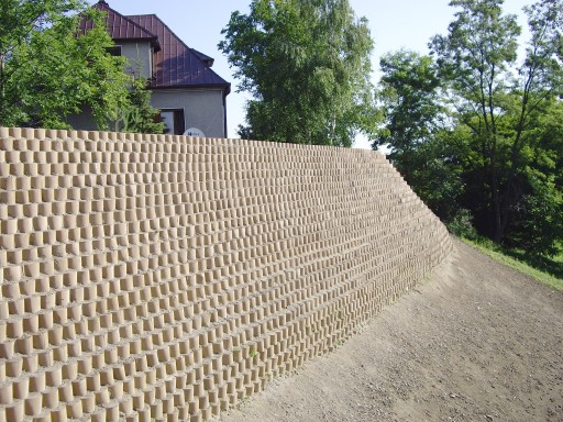 Geokrata komórkowa ( Geosiatka komórkowa ) " Geofeniks " jako mur oporowy.