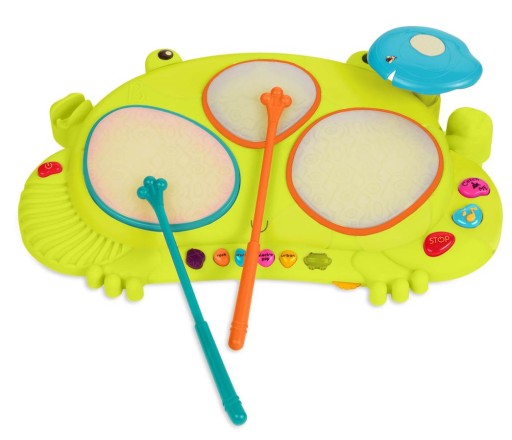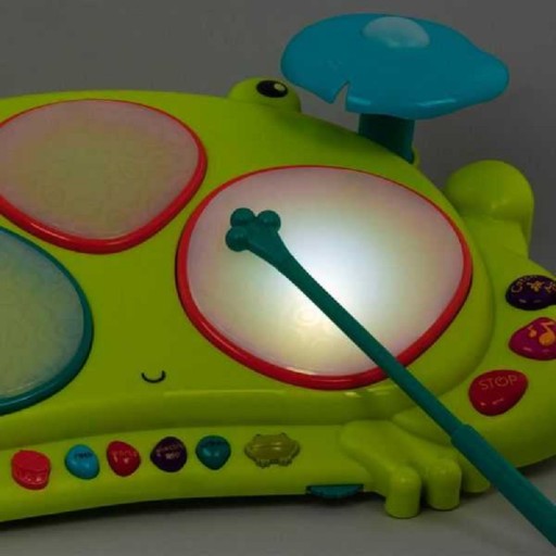 Perkusja Żaba Rabbit tat-tat to jedna z serii inspirujących zabawek muzycznych z firmy B.Toys, która otrzymała tytuł "Zabawki Roku 2013". Przenośny, lekki zestaw perkusyjny inspirowany postacią żaby to idealny sposób na wprowadzenie dzieci w świat muzyki.Ribbit-tat-tat to instrument, który jednocześnie pozwala na zabawę oraz tworzenie własnych kompozycji. Śmieszne dźwięki rechoczącej żaby na pewno zaintrygują dziecko i zachęcą do odkrywania kolejnych funkcji perkusji, tym samym zapewniając rozrywkę na długie godziny.Pomysłowość oraz jakość wykonania, jest tak zaskakująca, że z pewnością zainteresuje najbardziej wymagające dziecko.