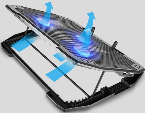 O ile umieszczone w podstawce wentylatory odpowiadają za schłodzenie Twojego sprzętu, o tyle nie byłoby to możliwe bez metalowego panelu z otworami o optymalnej wielkości. Dzięki temu tłoczone powietrze przepływa przez podstawkę bez oporów, gwarantując szybkie schłodzenie laptopa. Oprócz tego metalowy panel pełni jeszcze jedną funkcję - zapewnia dużą wytrzymałość.