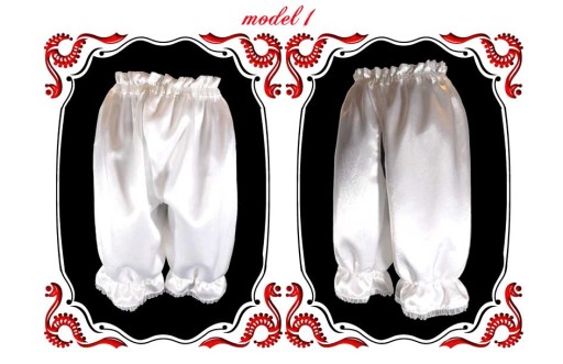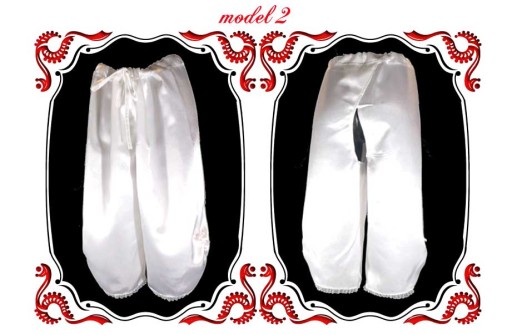 Prezentowane przez nas pantalony, dostępne są zarówno w wersji damskiej, jak również męskiej, wykonane z białej satyny lub do wyboru