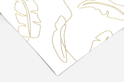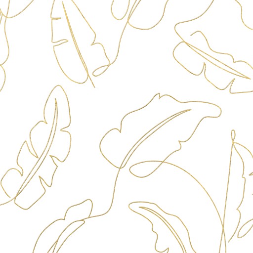 Wzór przedstawiający liście bananowca przestawione w nowoczesnym estetycznym stylu imitującym rysunek bez odrywania narzędzia płótna. Minimalistyczny design świetnie wkomponuje się w każde nowoczesne wnętrze będąc nienachalną ozdobą z wyczuciem smaku. Kolory - żółty i pomarańczowy imitujące złoty, brokat