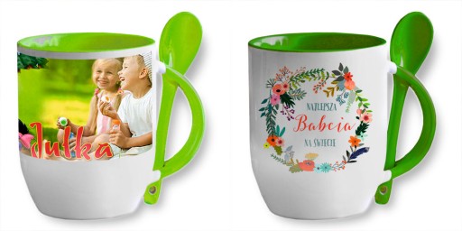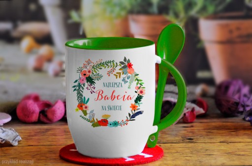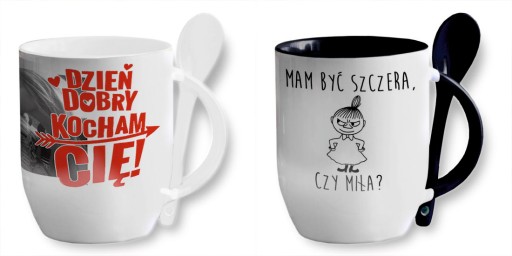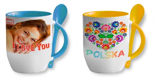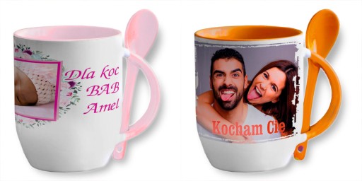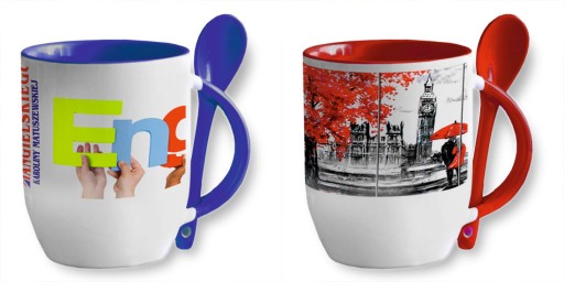 kubek z kolorowym wnętrzem i łyżeczką - w różnych kolorach