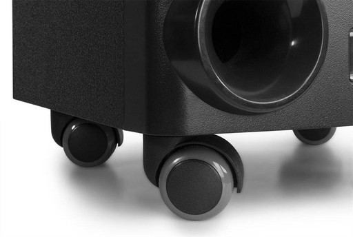 Głośnik jest solidnie zbudowany, starannie wykończony i wyposażony w 4 kółka, dzięki czemu można go łatwo przemieszczać.