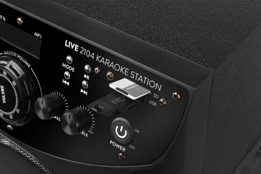 Impreza będzie niezapomniana. Głośnik Bluetooth z wbudowanym wzmacniaczem 400W jest wyposażony w 2 mikrofony oraz w kolorowe diody dyskotekowe. Dzięki funkcji Bluetooth, odtwarzaczowi MP3 i wejściu liniowemu, z LIVE2104 możesz działać we wszystkich kierunkach, aby odtwarzać ulubioną muzykę, oczywiście z możliwością śpiewania oraz nagrywania swoich umiejętności wokalnych Do zestawu dochodzi pilot i dwa mikrofony przewodowe. Głośnik karaoke LIVE2104 to zatem kompletny zestaw, z którego możesz od razu korzystać.