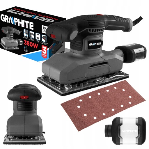 GRAPHITE SZLIFIERKA OSCYLACYJNA 380W 115x230MM PAPIER I POJEMNIK PYŁ 59G329 Marka Graphite