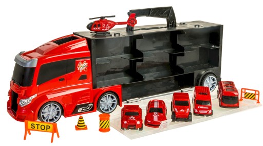 Ciężarówka WALIZKA z zestawem pojazdów STRAŻ POŻARNA.