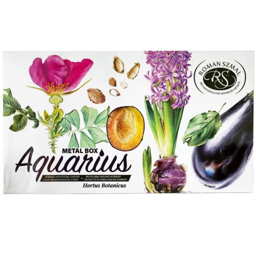 Zestaw Aquarius Hortus Botanicus zawiera 12 kolorów dobranych przez artystkę Izabelę Wolską-Kuśmider (Iza Wolska Greenart). Zestawienie kolorystyczne pozwala na uzyskanie pełnej palety barw potrzebnej do wykonania ilustracji botanicznej. Farby zamknięte w wygodnej metalowej kasetce.