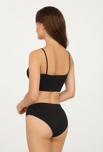 Miękki, przyjemny otulający kobiecy biust Top pozwala poczuć się luksusowo. Jest to zasługą połączenia bezszwowej technologii, przemyślanego kroju oraz delikatnego materiału. Przewiewna tkanina o grubości 60 den gwarantuje optymalną cyrkulację powietrza, a wykorzystana domieszka elastanu nadaje materiałowi rozciągliwości. Top idealnie przylega do ciała, a brak szwów i prosty fason pozwala uniknąć wrażenia ucisku bądź podrażnienia skóry. Subtelne ramiączka w połączeniu z elegancko wszytą gumką pod biustem gwarantują odpowiednie podtrzymanie piersi. Dzięki temu top idealnie nadaje się do ćwiczeń. sprawdza się tez pod odzież w upalne dni. Pochłania i odprowadza wilgoć, pozwalając poczuć się swobodnie nawet w szczególnie niedogodnych warunkach.