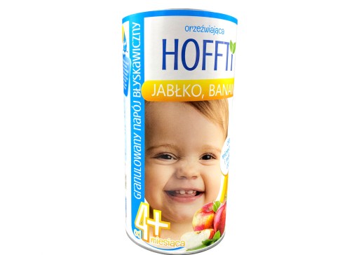 Hoffti Orzeźwiająca JABŁKO, BANAN Granulowany napój błyskawiczny to produkt adresowany do niemowląt po 4. miesiącu życia i małych dzieci. Doskonale gasi pragnienie i orzeźwia.