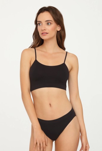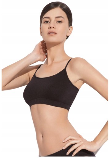 Miękki, przyjemny otulający kobiecy biust Top pozwala poczuć się luksusowo. Jest to zasługą połączenia bezszwowej technologii, przemyślanego kroju oraz delikatnego materiału. Przewiewna tkanina o grubości 60 den gwarantuje optymalną cyrkulację powietrza, a wykorzystana domieszka elastanu nadaje materiałowi rozciągliwości. Top idealnie przylega do ciała, a brak szwów i prosty fason pozwala uniknąć wrażenia ucisku bądź podrażnienia skóry. Subtelne ramiączka w połączeniu z elegancko wszytą gumką pod biustem gwarantują odpowiednie podtrzymanie piersi. Dzięki temu top idealnie nadaje się do ćwiczeń. sprawdza się tez pod odzież w upalne dni. Pochłania i odprowadza wilgoć, pozwalając poczuć się swobodnie nawet w szczególnie niedogodnych warunkach.