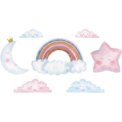 НАКЛЕЙКА НА НАСТЕНУ ПАСТЕЛИ ОБЛАКА РАДУГА 120х64см