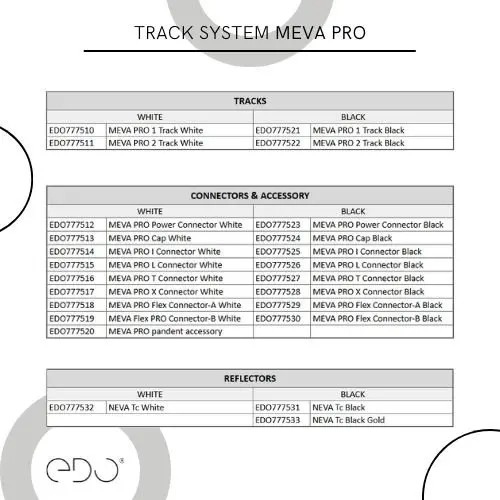 Zaślepka do szynoprzewodów oświetleniowych MEVA PRO marki EDO występuje w kolorze białym i czarnym, dzięki czemu można dopasować ją do koloru szyny, którą wybrano. Umożliwia klientowi estetyczne i bezpieczniejsze wykończenie instalacji oświetleniowej. Zaślepka MEVA PRO Cap wykonana z wysokiej jakości materiału PC. Zaślepka należy do produktów z gamy Łączniki i Akcesoria do systemu szynowego.