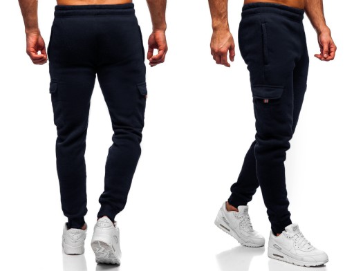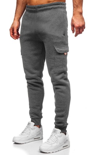 Ocieplane męskie spodnie dresowe bojówki z kieszonkami NA ZAMKI.Mięsisty, trwały, ciepły materiał.