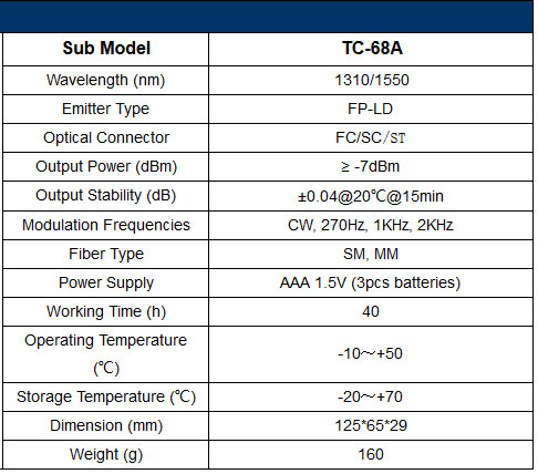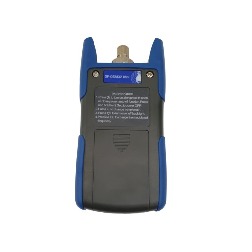 Tester źródła światła Spacetronik SP-OSM32 Mini charakteryzuje się zaawansowaną technologią sterowania, wysoką mocą wyjściową i bardzo niskim zużyciem energii. Może pracować przy 1550 nm, 1490 nm, 1310 nm, 1300 nm, 850 nm, pojedynczej, podwójnej lub potrójnej długości fali. Może eksportować różne częstotliwości modulacji (CW, 270HZ, 1KHZ, 2KHZ). Miernik tego typu może być szeroko stosowany w komunikacji optycznej, pomiarach optycznych, wykrywaniu światłowodów i tip.