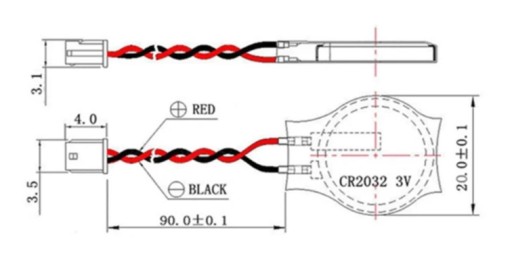 BATERIA DO PODTRZYMANIA USTAWIEŃ LAPTOPA - CMOS BIOS CR2032 Z KABELKIEM I WTYCZKĄ