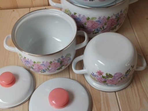 Garnki są pokryte emalią na zewnątrz i wewnątrz
