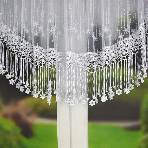 Firana w łuk z woalu uzupełni dekorację okna w stylu klasycznym, romantycznym i glamour. Idealna na pojedyncze okno. Pasuje do kuchni, łazienki lub pokoju dziecięcego. Elegancka gipiura nada wnętrzu stylowego charakteru. Firana jest niezwykle trwała i pięknie się układa.