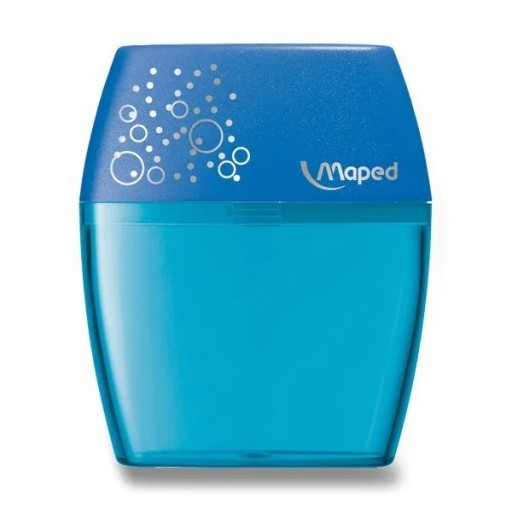 - Plastikowa temperówka z dwoma otworami i transparentnym pojemnikiem na ścinki