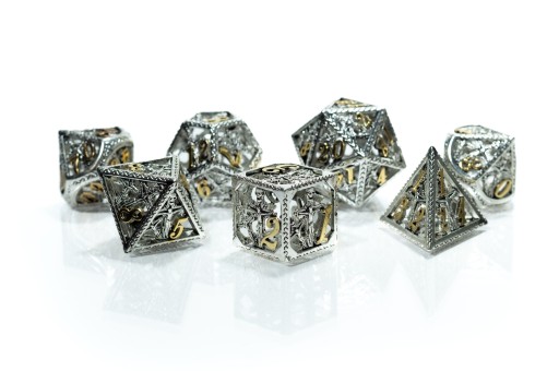 Zestaw siedmiu metalowych kości do gier fabularnych