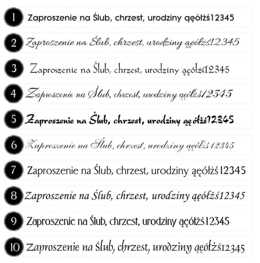 - Personalizację zaproszenia gratis przy zakupie powyżej 20 sztuk zaproszeń.