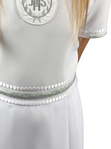 Nieskazitelnie biała alba o sukienkowym kroju to wyjątkowy strój dla dziewczynki przystępującej do Pierwszej Komunii Świętej.