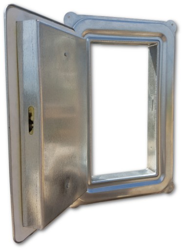 Grube drzwiczki stalowe ocynk antywybuchowe uszczelniane, izolowane z zamkiem i regulowaną głębokością tylnej ramki