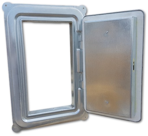 Drzwiczki idealnie nadają się do górnej wyczystki, przez te drzwiczki przejdzie ceramiczna zaślepka wyczystki (zaślepka niemiecka, typ niemiecki - montowana całkowicie do wewnątrz ramiki wyczystki).