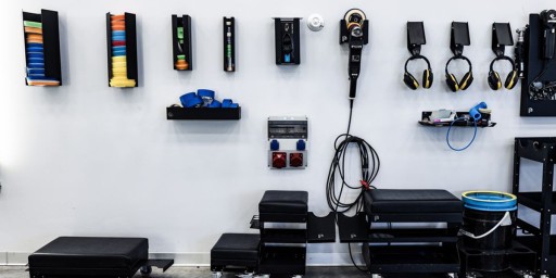 Wygodna półka do przechowywania taśm ochronnych. Specjalnie zaprojektowane wcięcie po bokach ułatwia podbieranie taśm. Półka pomieści wszystkie dostępne na rynku wielkości taśm.