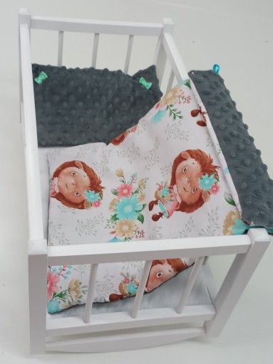 DREWNIANA KOŁYSKA DLA LALEK ORAZ POŚCIEL MINKY+ BAWEŁNA
