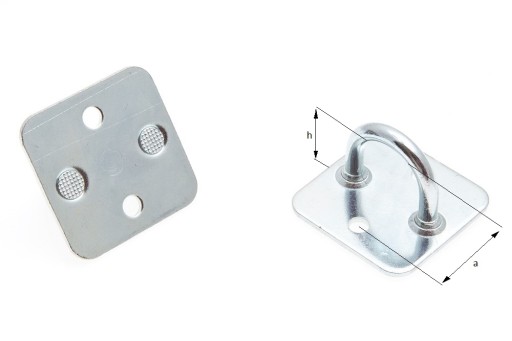- uchwyt wykonany z metalu ocynkowanego na kwadratowej podstawie z oczkiem