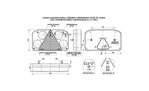 - lampa zespolona hor-68, która spełnia funkcje drogowe (światła, kierunkowskazy, pozycyjne, stop, światło cofania, trójkąt odblaskowy)