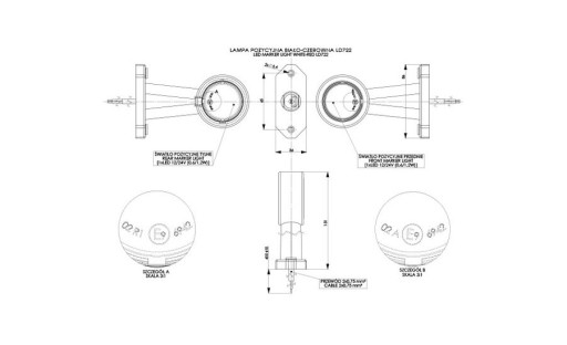 - lampa obrysowa hermetycznie (szczelnie zamknięta) 12/24V z przewodem ok. 30 cm