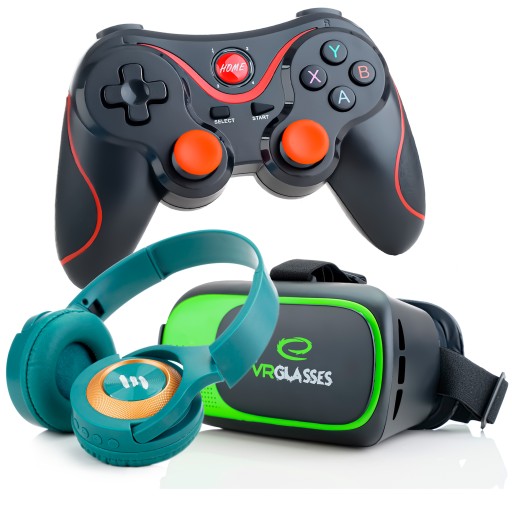 Idealnie połaczenie Gogli VR to połączenie ich w zestaw z Gamepadem bezprzewodowym. Rozglądaj się przy pomocy okularów VR, a przy pomocy Gamepada poruszaj się po wirtualnym świecie.