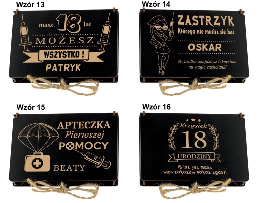 - Personalizowany grawer wykonany na podstawie wzorów znajdujących się poniżej.