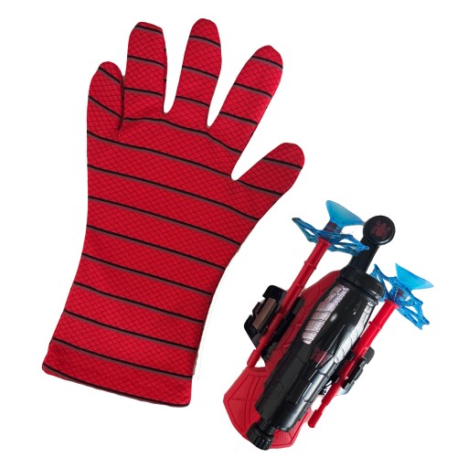 Strój z rękawicą pozwoli dzieciom na wcielenie się w superbohatera i strzelać siecią. Dzięki rękawicy dzieci mogą wystrzelić sieć za pomocą jednego przycisku! Rękawicę wraz z wyrzutnią załóż na rękę, następnie wyciągnij strzałki na których zamocowana jest sieć, naładuj nią magazynek naciśnij spust i ciesz się wspaniała zabawą.