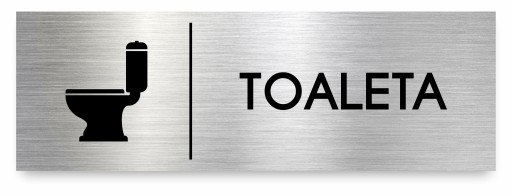 TABLICZKA GRAWEROWANA "TOALETA" Z DIBONDU SZCZOTKOWANEGO KOLORU SREBRNEGO 30x10 cm. NOWOCZESNA I ELEGANCKA.