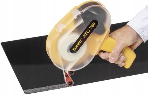 - jedno naciśnięcie na spust pozwala na szybkie a zarazem precyzyjnie kontrolowane nakładanie błon klejowych Scotch ATG podczas gdy przekładka nawija się na rolkę dyspensera.