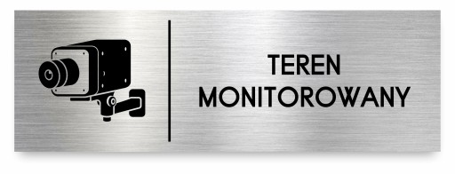 TABLICZKA DRUKOWANA PLOTEREM UV "TEREN MONITOROWANY " Z DIBONDU SZCZOTKOWANEGO KOLORU SREBRNEGO 30x10 cm. NOWOCZESNA I ELEGANCKA.