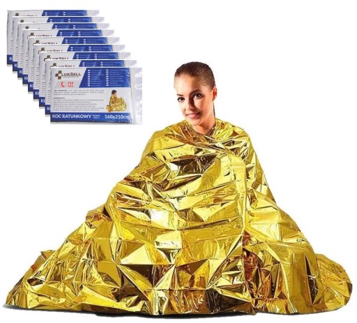 Koc ratunkowy termiczny - folia termiczna NRC srebrno-złota 160x200 cm 10 sztuk